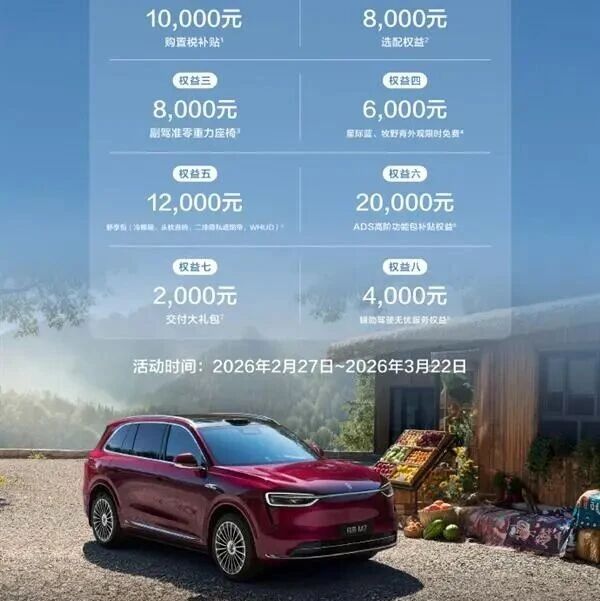 至高7万!问界M7新增限时购车权益 汽车行业关注 · 公众号 · 汽车 · 3 天前 · |