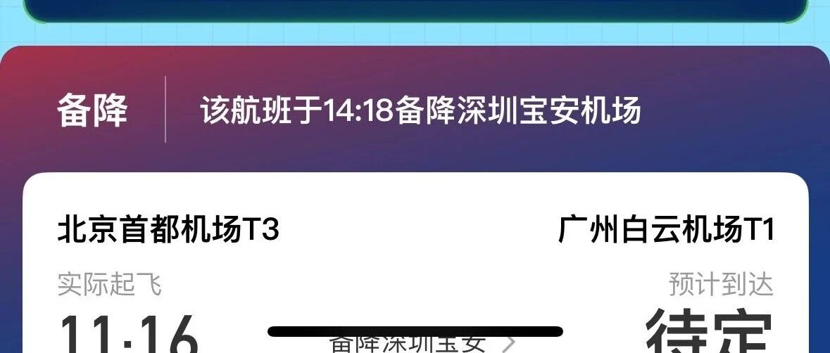 CA1315北京-广州,刚备降在了深圳 Always on way · 公众号 · · 2 周前 · |