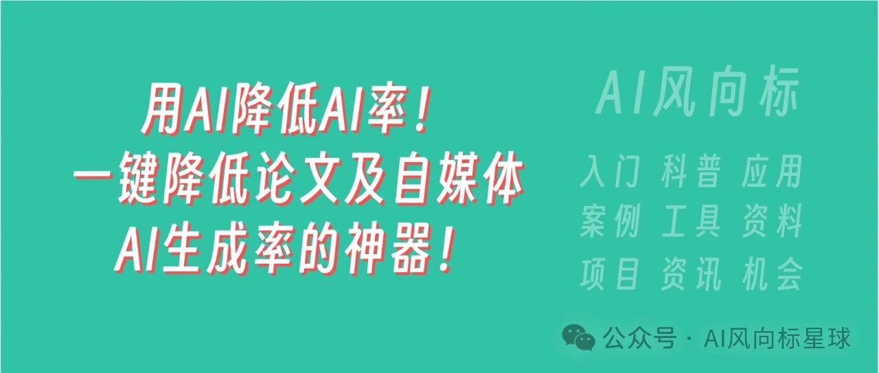 一键降低AI率!如果用魔法可以打败魔法,那么用AI可以打败AI吗?一键降低论文及自媒体AI生成率! AI风向标星球 · 公众号 · · 1 年前 · |