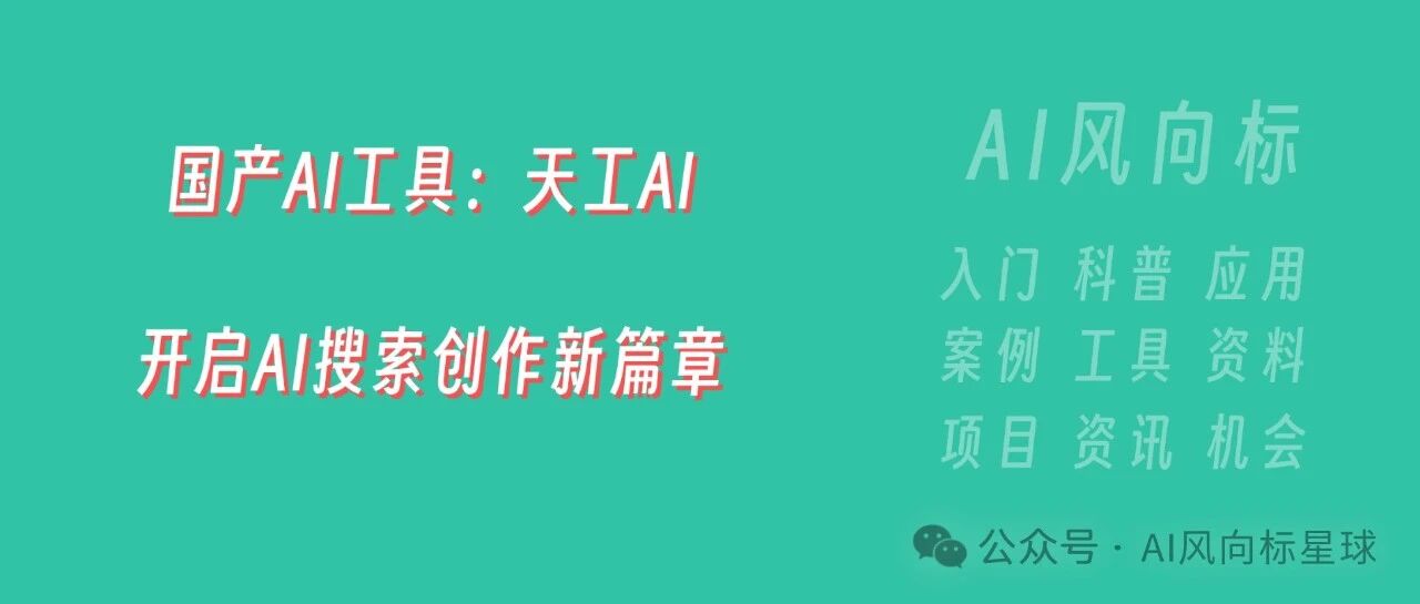 国产AI工具:天工AI,开启AI搜索与创作新篇章 AI风向标星球 · 公众号 · · 1 年前 · |