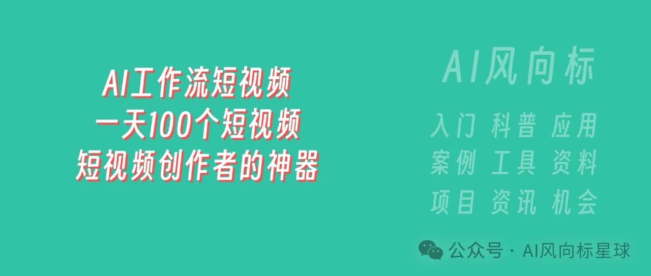 AI工作流制作短视频,一天可批量产出100个短视频?!!? 短视频创作者的神器 AI风向标星球 · 公众号 · · 1 年前 · |