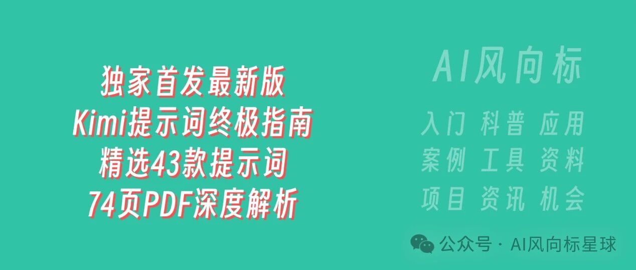 独家首发!最新版Kimi官方提示词终极指南:精选43款提示词,74页PDF深度解析 AI风向标星球 · 公众号 · · 1 年前 · |