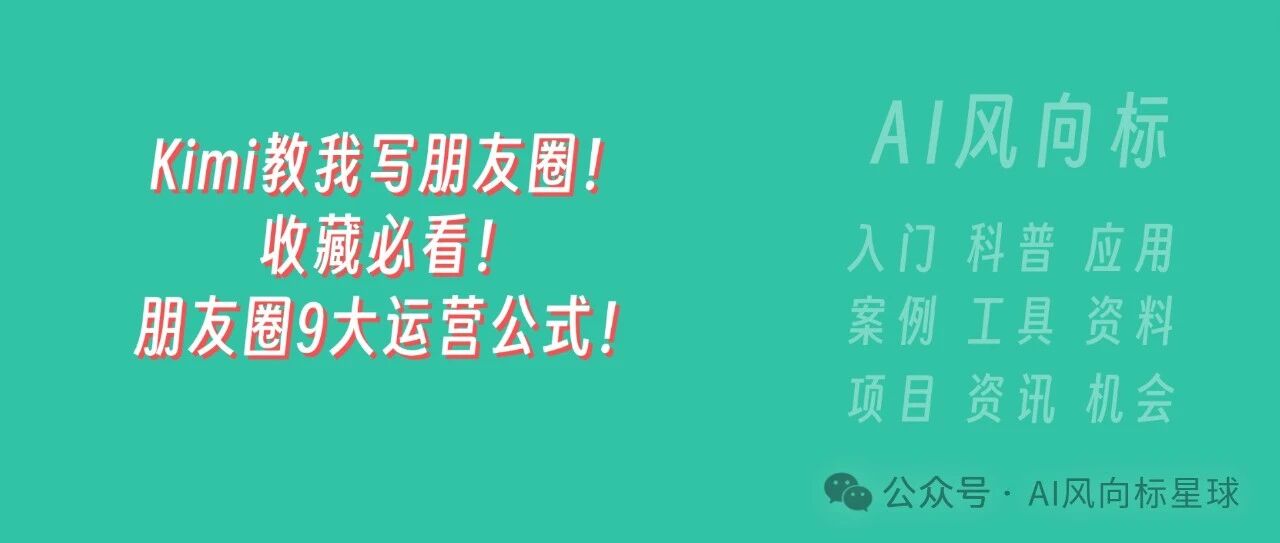 国产AI工具Kimi教我写100+互动的朋友圈!收藏必看!朋友圈9大运营公式! AI风向标星球 · 公众号 · · 1 年前 · |