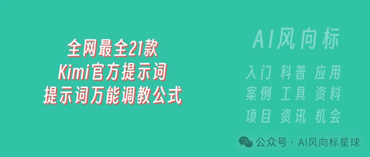 全网最全21款Kimi官方提示词Kimi阅读助手提示词-提示词万能调教公式 AI风向标星球 · 公众号 · · 1 年前 · |