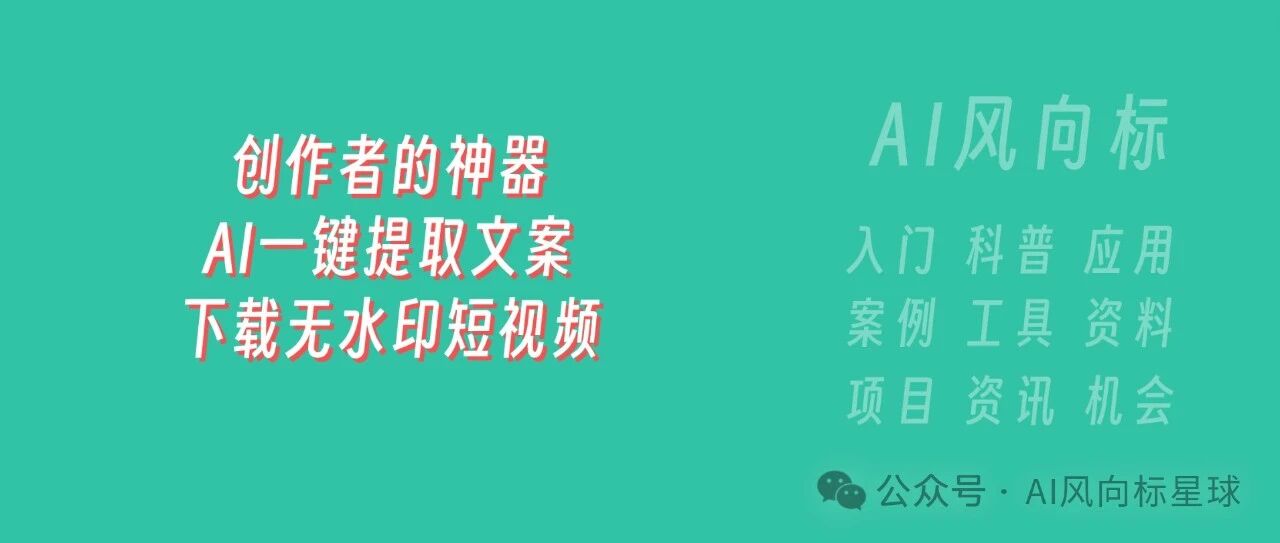 如何通过AI一键提取短视频文案、下载无水印短视频?短视频创作者的神器! AI风向标星球 · 公众号 · · 1 年前 · |