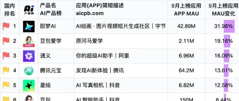8月AI产品榜|豆包MAU1.41亿 即梦3250万 拾珠传媒AI · 公众号 · 科技自媒体 AI媒体 · 1 月前 · |