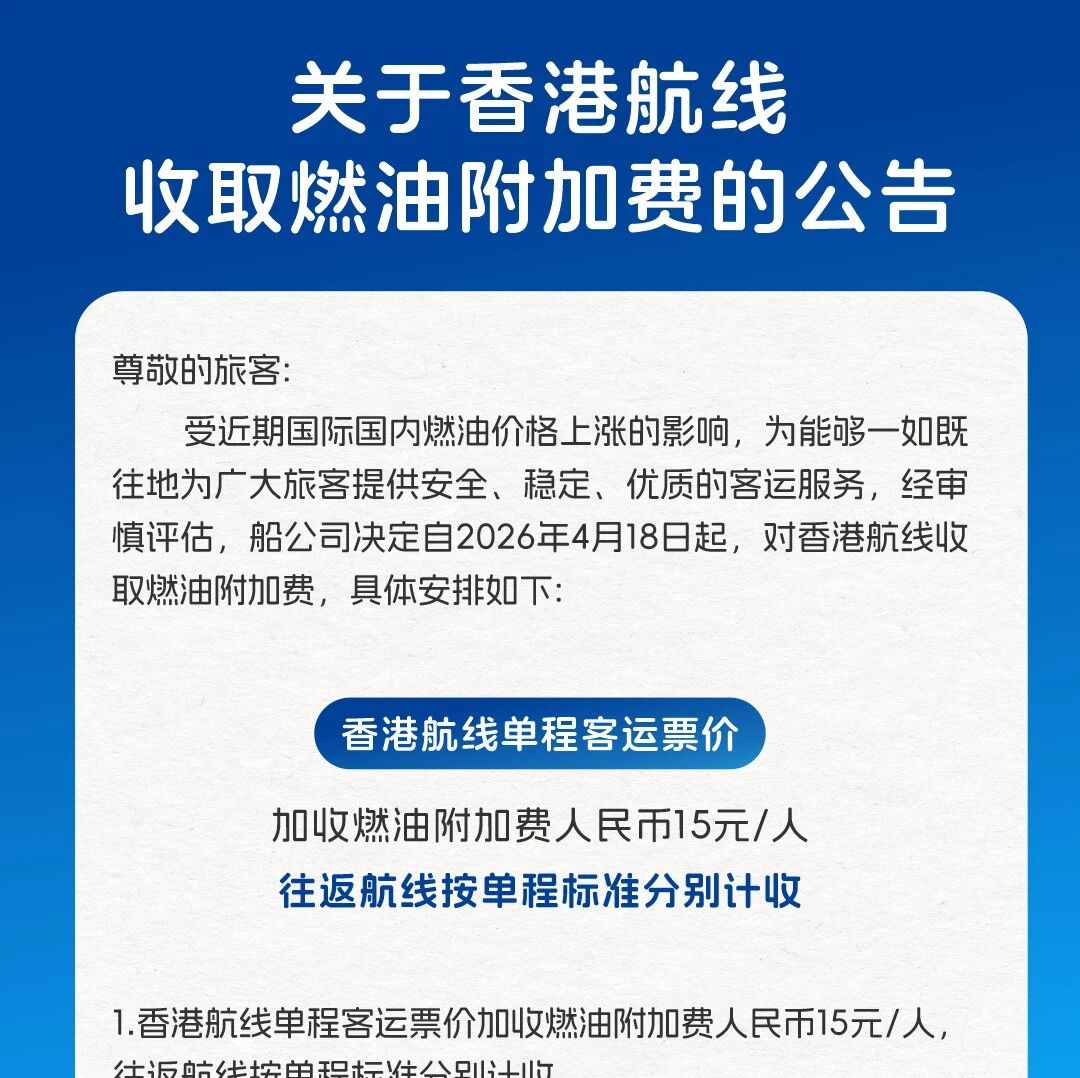 明起,香港航线收取燃油附加费!九洲港公告 深圳大件事 · 公众号 · 深圳 · 7 小时前 · |