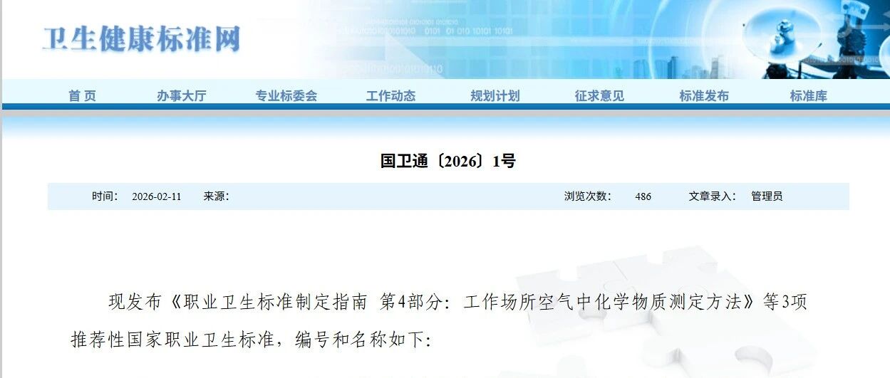 《职业卫生标准制定指南 第4部分:工作场所空气中化学物质测定方法》等3项推荐性国家职业卫生标准发布 职业卫生技术服务分会 · 公众号 · · 1 周前 · |