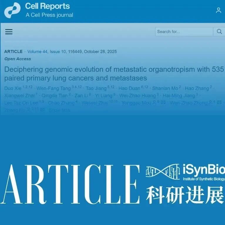 《合成生物学》推荐 | Cell Reports | 胡政/钟文昭/牟永告团队合作揭示肺癌脑转移的驱... 合成生物学期刊 · 公众号 · · 3 周前 · |