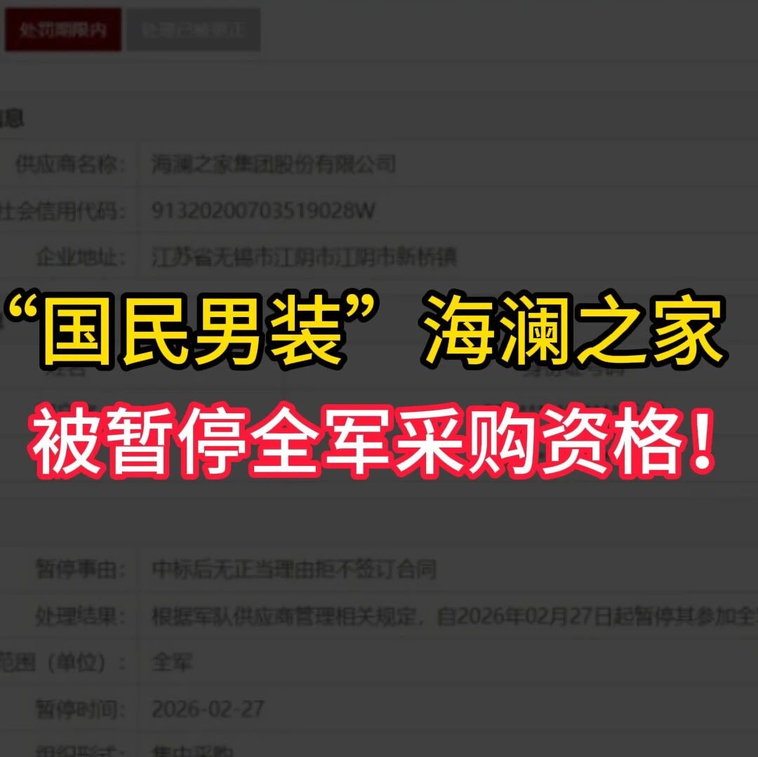 “国民男装”海澜之家被暂停全军采购资格! 财圈社 · 公众号 · · 18 小时前 · |