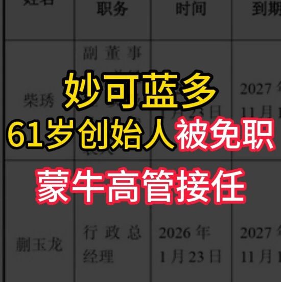 妙可蓝多61岁创始人被免职,蒙牛高管接任 财圈社 · 公众号 · · 1 月前 · |