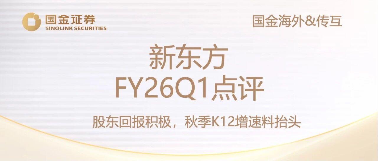 |  | 国金海外 & 传互|新东方FY26Q1点评:股东回报积极,秋季K12增速料抬头 锤子海外捕鱼 · 公众号 · 投资 教育 · 昨天 · |