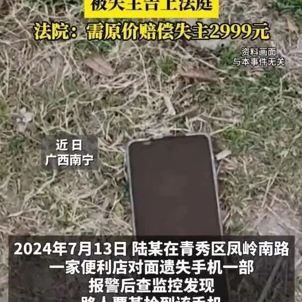 广西一男子捡了一台手机又弄丢,被失主告上法庭,法院:需原价赔偿失主2999元