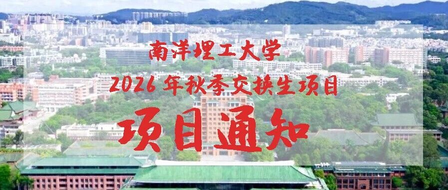 项目通知|等你来闯!南洋理工大学2026年秋季交换生项目开始报名 SCUT海外交流 · 公众号 · · 1 周前 · |