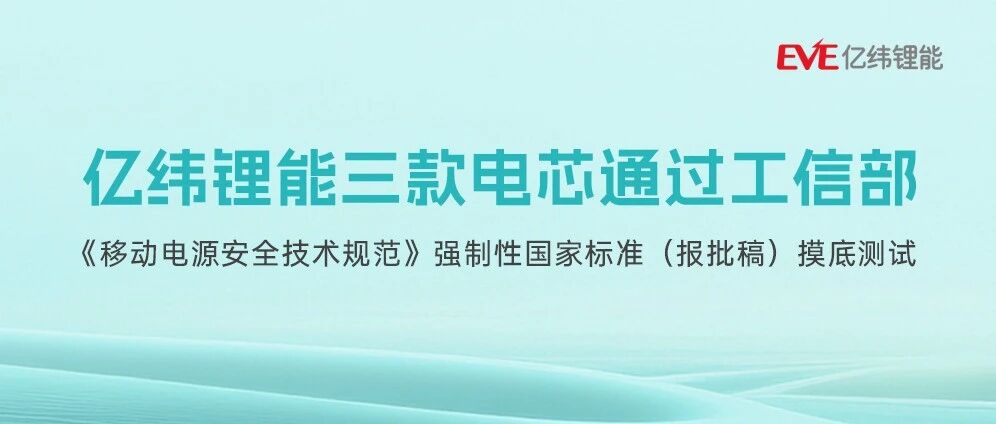 再获认可!亿纬锂能三款电芯通过移动电源新国标摸底测试 亿纬锂能 · 公众号 · · 2 周前 · |