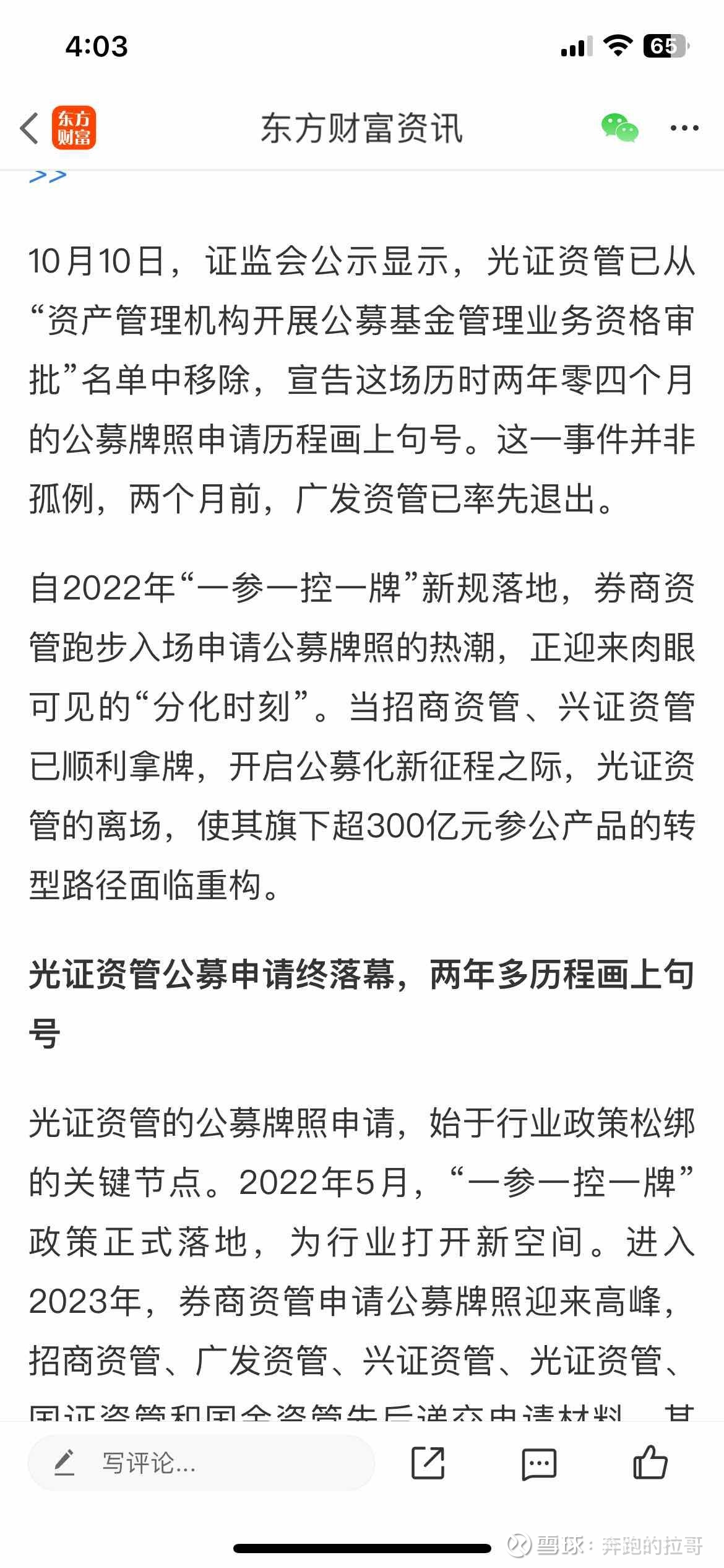|   | 这个很正常啊,有一參一控的要求,光大已经有公墓基金拍照了,不能有-20251012142357 端木赐-亿则屡中 · 雪球动态 · · 2 周前 · |