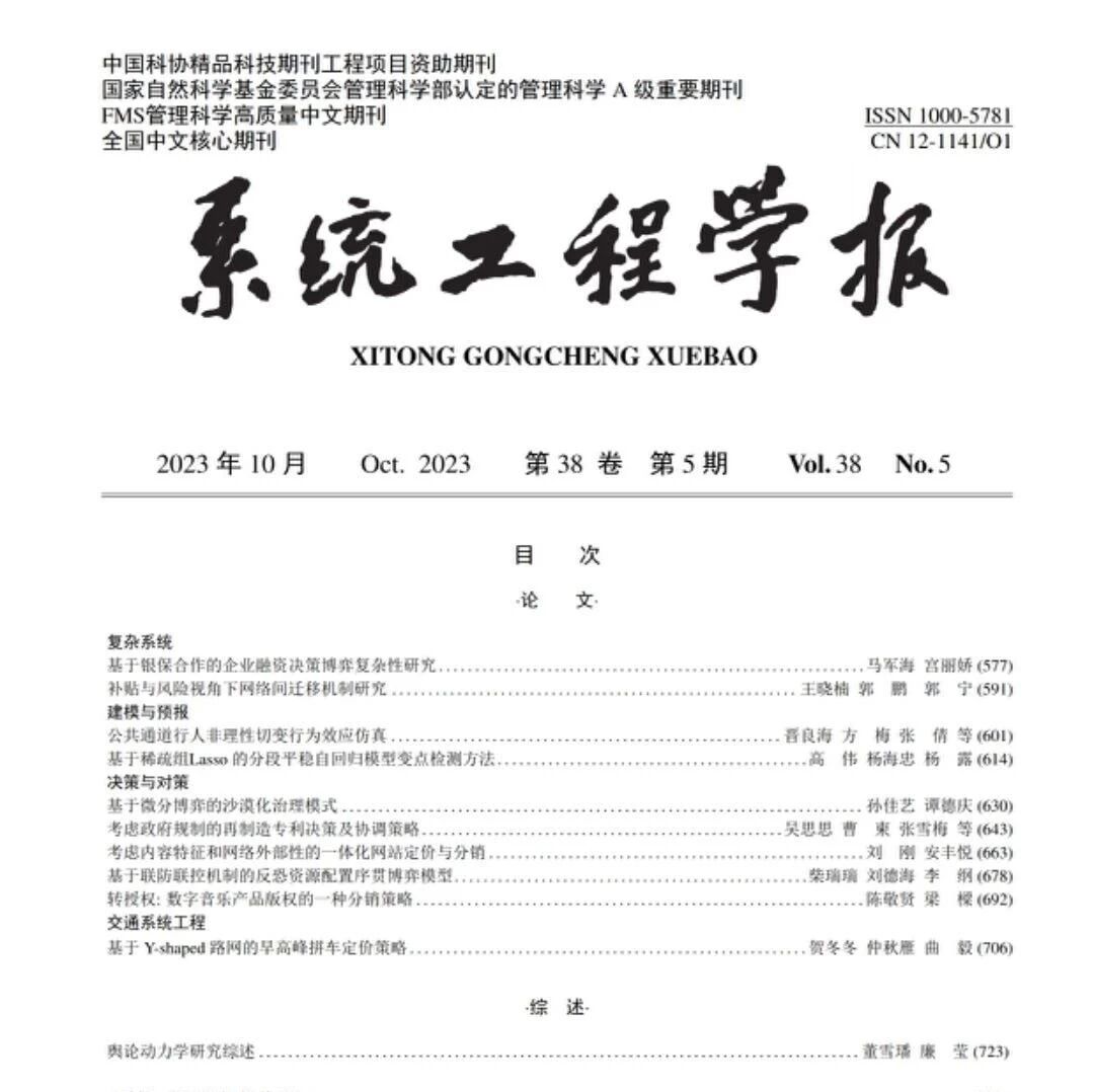 期刊目录|《系统科学与数学》2024年第7期 中国系统工程学会 · 公众号 · · 1 年前 · |