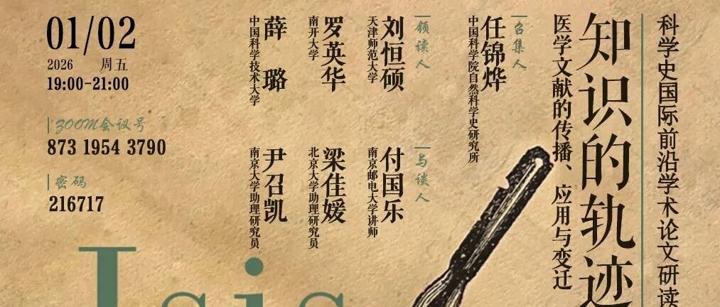 研读·预告 | 第21期:知识的轨迹:医学文献的传播、应用与变迁 中科大科技史与科技考古 · 公众号 · · 2 月前 · |