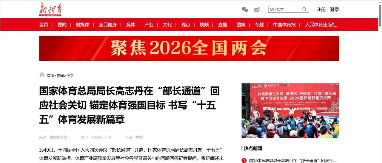 国家体育总局局长高志丹在“部长通道”答记者问 体银体育 · 公众号 · · 3 周前 · |