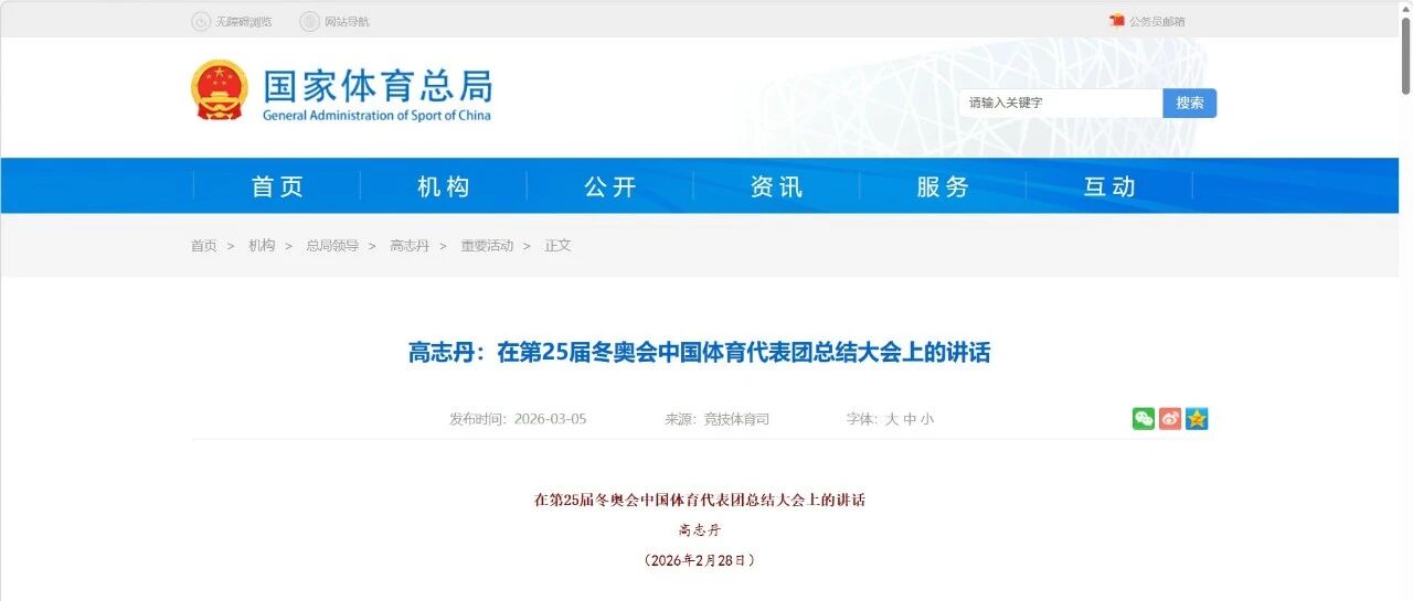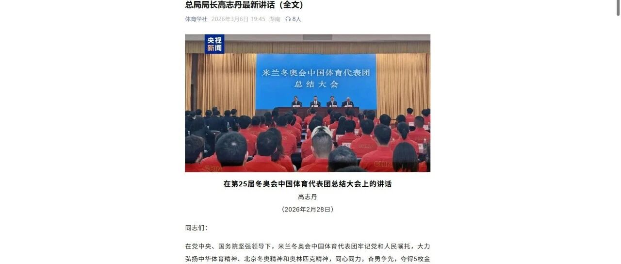 总局局长高志丹在第25届冬奥会中国体育代表团总结大会上的最新讲话 体银体育 · 公众号 · · 4 周前 · |