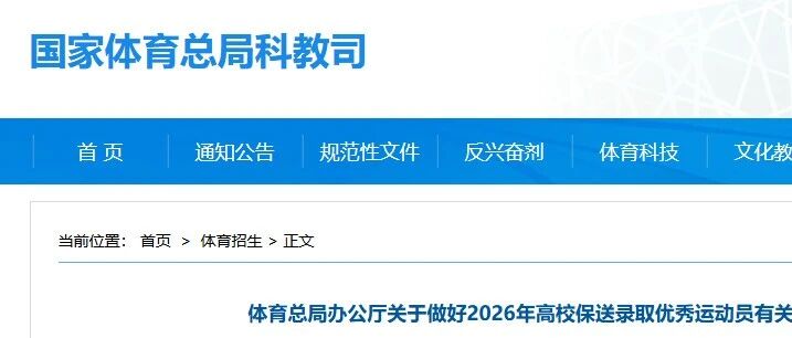 体育总局办公厅关于做好2026年高校保送录取优秀运动员有关事宜的通知 体银体育 · 公众号 · · 1 月前 · |