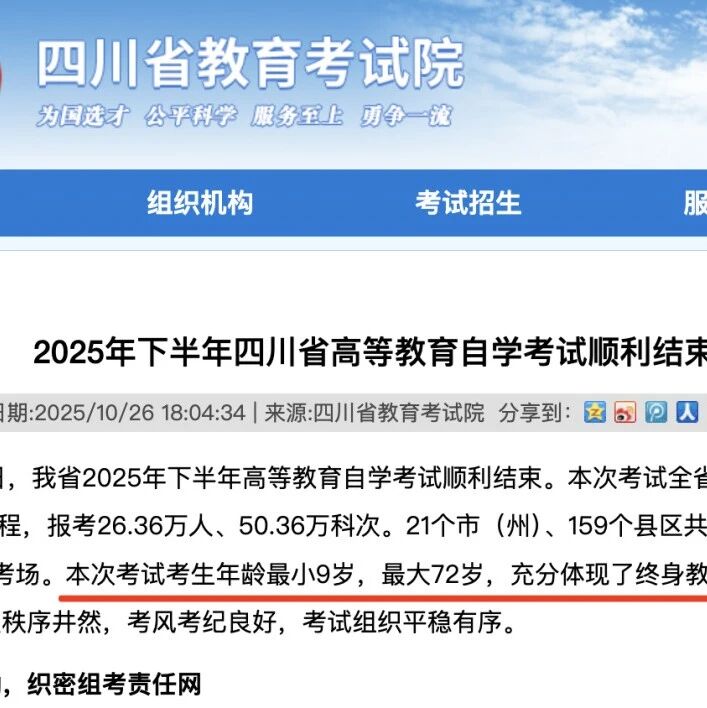 自考最小考生9岁,最年长者72岁,考试院:专科层次无年龄与学历门槛 YNTV2都市条形码 · 公众号 · · 6 天前 · |
