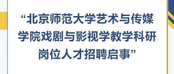 人才招聘启事丨北京师范大学艺术与传媒学院戏剧与影视学教学科研岗位 北师艺家人 · 公众号 · · 2 周前 · |