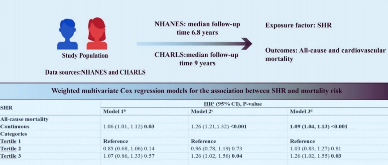 双数据库!中国学者用NHANES指标SHR发文一区Top杂志,验证数据来自CHARLS 公共数据库与孟德尔随机化 · 公众号 · · 7 月前 · |