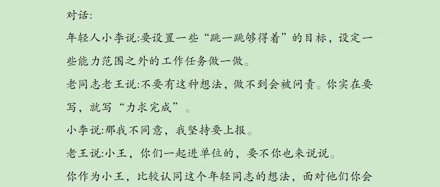 现在要制订年度工作计划目标。这是一个办公室内的对话......。你比较认同小李的想法,面对他们你会说... 面试零距离pro · 公众号 · · 1 年前 · |
