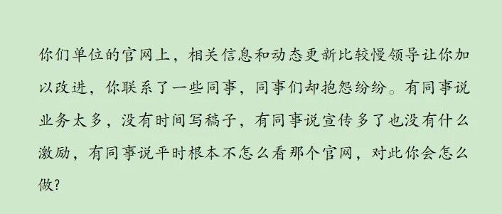 单位官网信息和动态更新慢,领导让你去改进。同事们抱怨:有的说业务太多,没时间写稿子;有的说没有激励;... 面试零距离pro · 公众号 · · 11 月前 · |