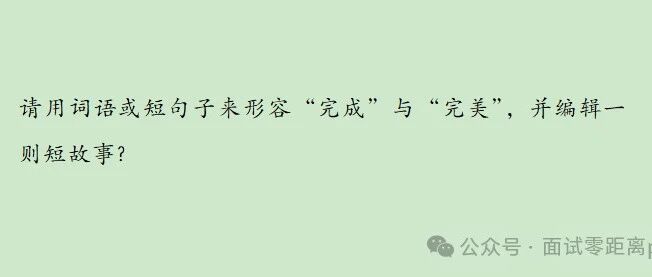 请用词语或短句子来形容“完成”与“完美”,并编辑一则短故事? 面试零距离pro · 公众号 · · 11 月前 · |