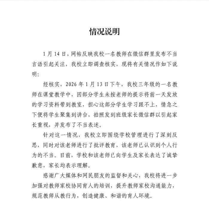 老师班级群晒未带齐试卷学生照片,称家长“多余”可以退群,校方通报! 西湖之声 · 公众号 · · 11 小时前 · |