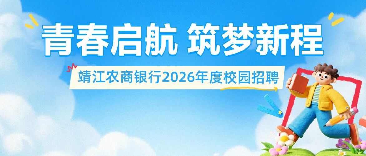 青春启航 筑梦新程 | 靖江农商银行2026年度校园招聘开始啦! 靖江农商银行 · 公众号 · · 4 周前 · |