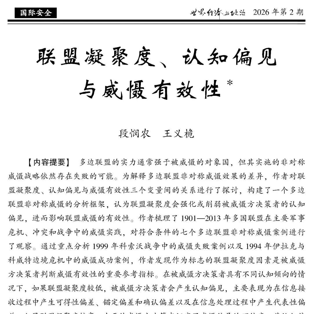 段悯农 王义桅:联盟凝聚度、认知偏见与威慑有效性 政治学与国际关系论坛 · 公众号 · · 2 天前 · |