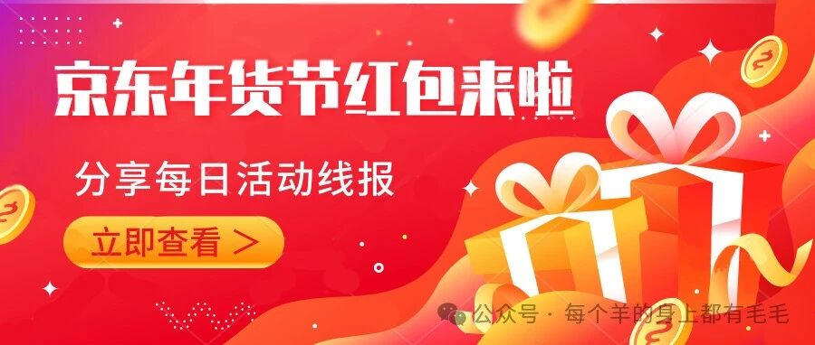 【羊毛线报】京东年货节超红领取!淘宝每日小虹包、支付宝银行、话费流量活动、猫超口令等合集 每个羊的身上都有毛毛 · 公众号 · · 1 年前 · |
