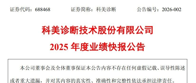 收入3.33亿,净利润下降65%,科美诊断发布业绩快报 思宇MedTech · 公众号 · · 1 周前 · |