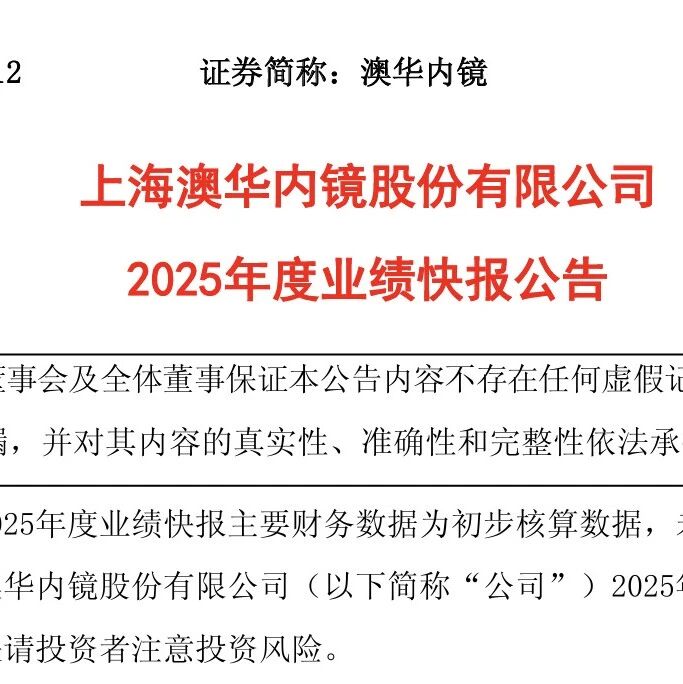 收入7.74亿,同比增长3.2%,澳华内镜发布2025业绩快报 思宇MedTech · 公众号 · · 2 周前 · |