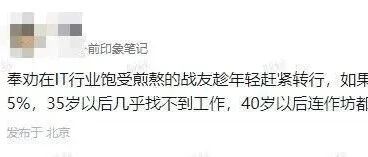 前印象笔记员工:奉劝在IT行业的战友趁年轻赶紧转行,如果你没有做到职业前5%,35后很难找到工作,4... Java编程精选 · 公众号 · Java · 2 月前 · |