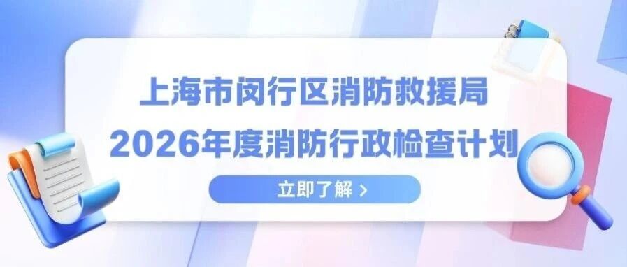 信息公开 | 上海市闵行区消防救援局2026年度消防行政检查计划 闵行消防 · 公众号 · · 2 天前 · |