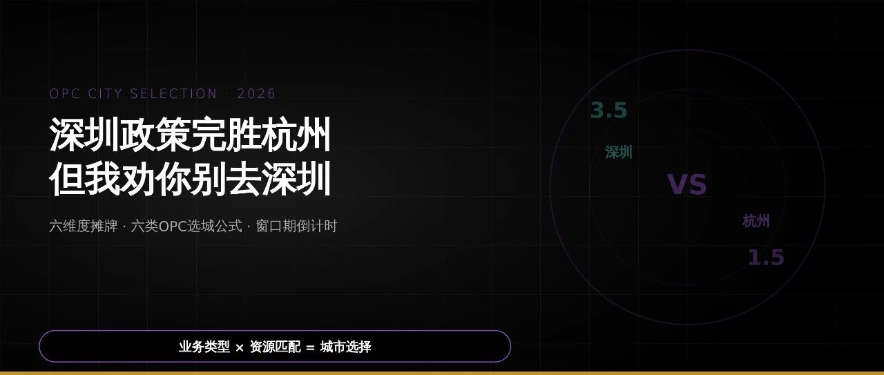 OPC创业选城,深圳政策完胜杭州,但我劝你别去深圳