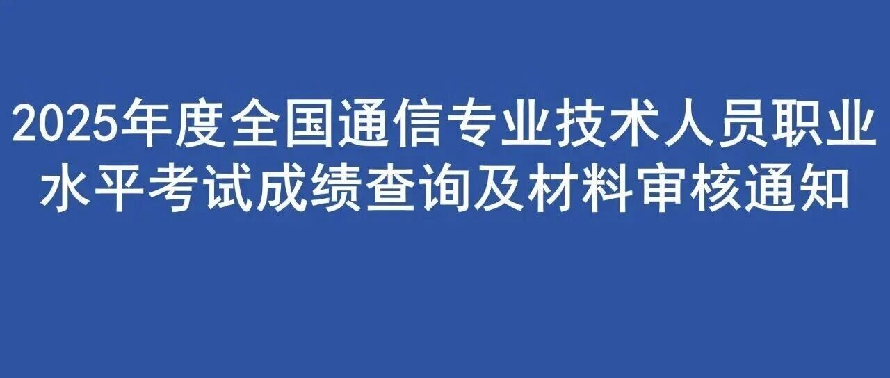 |  | 2025年度全国通信专业技术人员职业水平考试成绩查询及材料审核通知 上海通信圈 · 公众号 · · 3 天前 · |