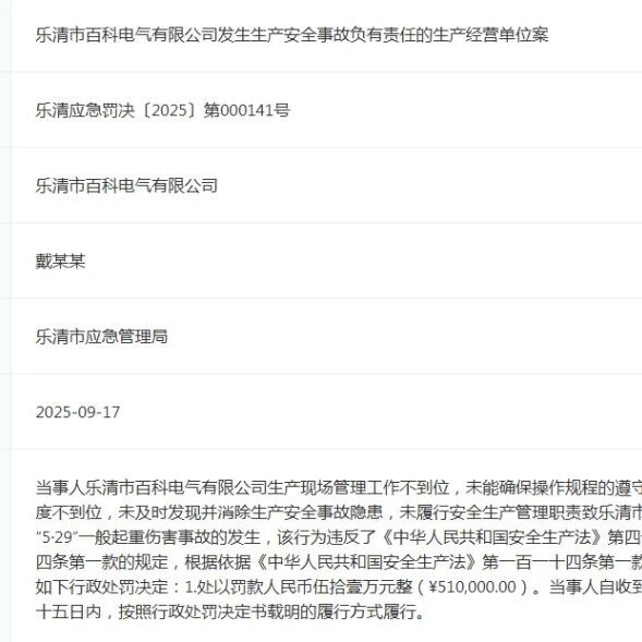 乐清一公司安全事故!被罚51万! 乐清上班族网 · 公众号 · 科技自媒体 · 1 周前 · |