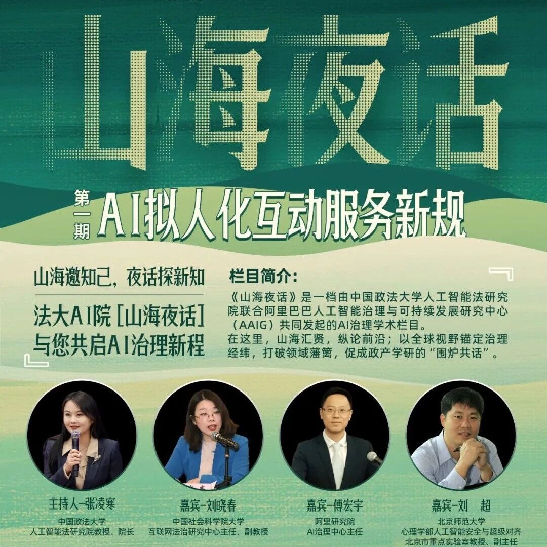 《山海夜话》首期开播:AI拟人化互动服务新规深度研讨!中国政法大学人工智能法研究院&阿里安全联合主办 阿里研究院 · 公众号 · 电商 · 2 月前 · |