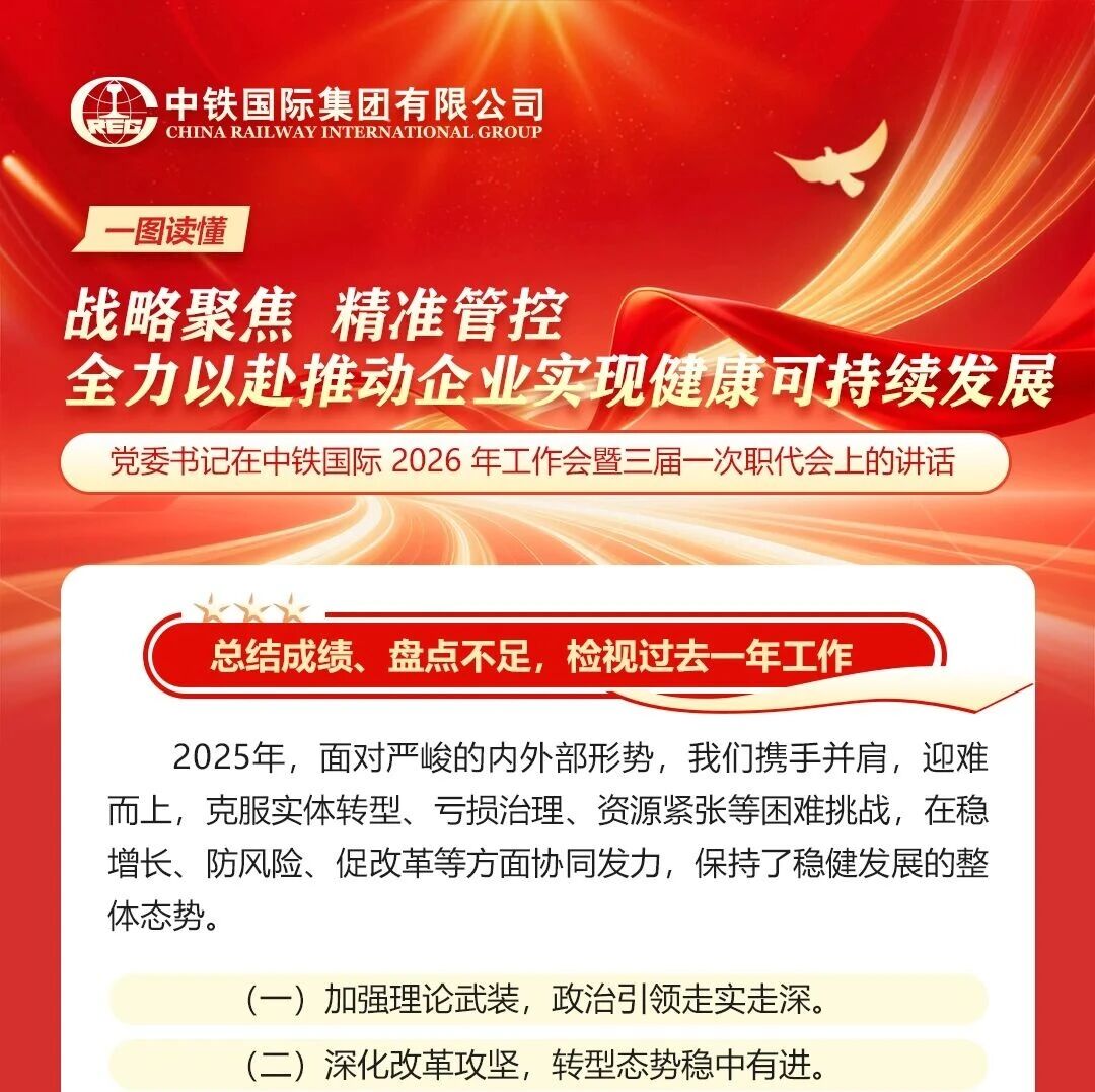 —图读懂党委书记在中铁国际 2026 年工作会暨三届一次职代会上的讲话 中铁国际集团 · 公众号 · 基建 · 6 小时前 · |