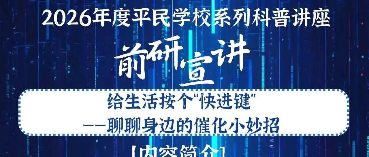 2026年度平民学校科普系列讲座第二十一讲:给生活按个“快进键”——聊聊身边的催化小妙招 北京大学前沿人 · 公众号 · · 4 天前 · |
