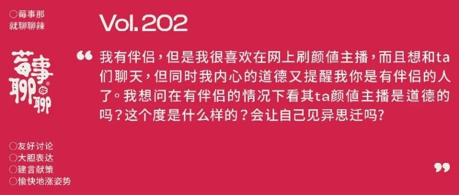 在有伴侣的情况下,与网上博主互动是否道德?|莓事聊聊202 莓辣MAYLOVE · 公众号 · 两性 · 8 小时前 · |