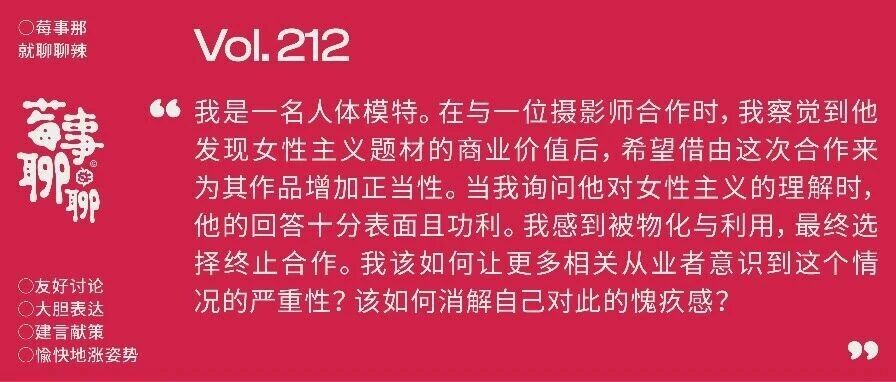 本人是人体模特,遇到了只想靠女性主义圈钱的男摄影师|莓事聊聊212 莓辣MAYLOVE · 公众号 · 两性 · 昨天 · |